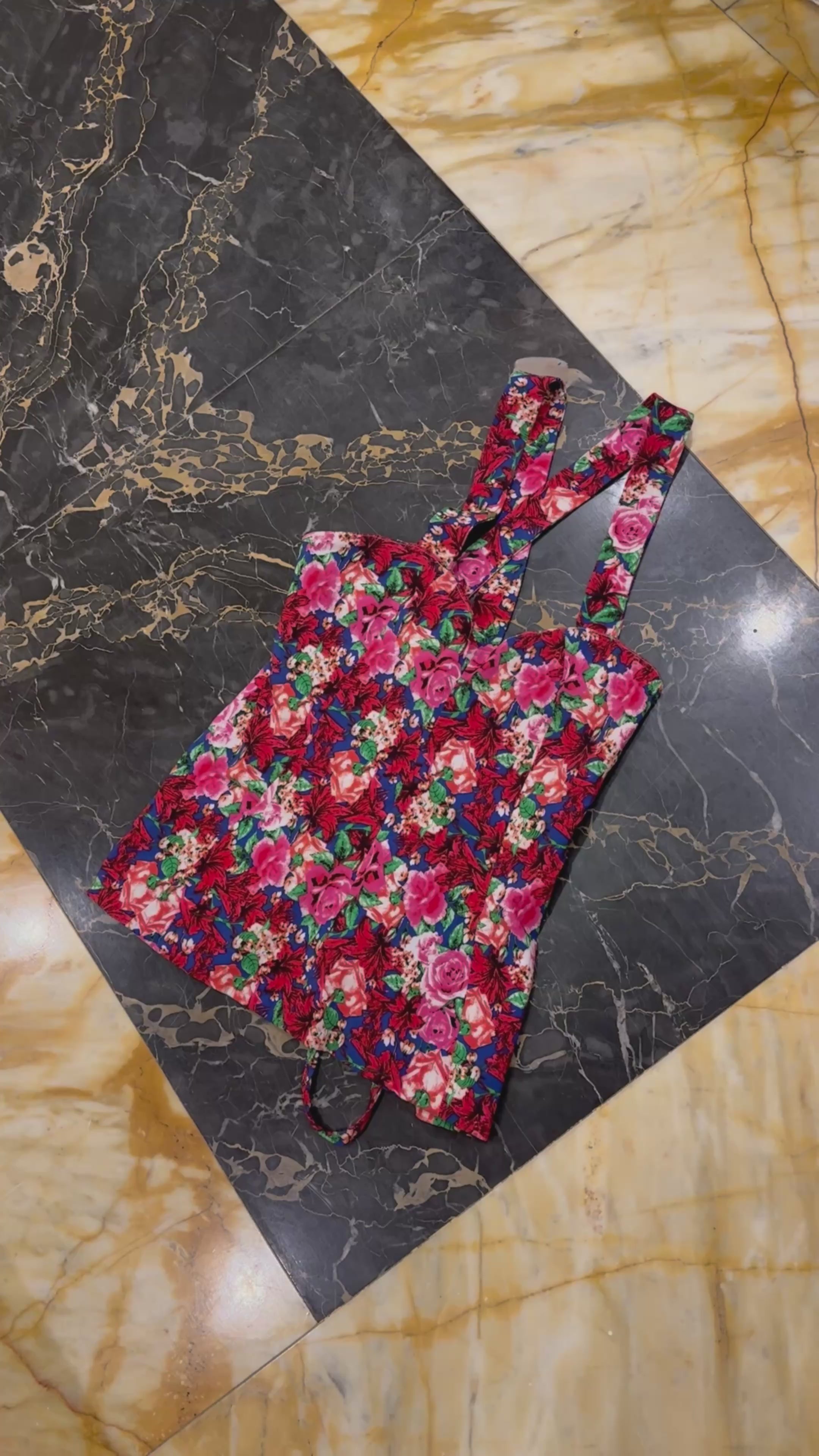 Rugalmas, virágmintás pamut anyaga a kényelmet és a természetességet képviseli – kellemes viselet egész napra, miközben különleges textúrája karakteressé teszi megjelenésedet. A hátsó megkötős rész lehetővé teszi, hogy a top mindig az aktuális alkatodra igazodjon, így valóban időtálló és fenntartható választás.